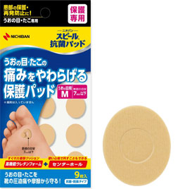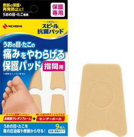 スピール™抗菌パッドは、貼るだけで魚の目・たこの痛みをやわらげる粘着剤付抗菌パッドです。